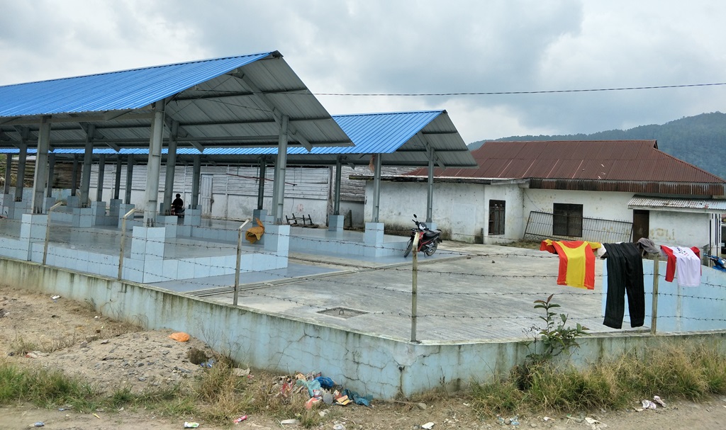 Dua unit bangunan balairung untuk pedagang tidak berfungsi sejak dibangun dua tahun lalu di Desa Aek Natolu Jaya, Lumbanjulu, Tobasa. PALAPAPOA/Jes Sihotang