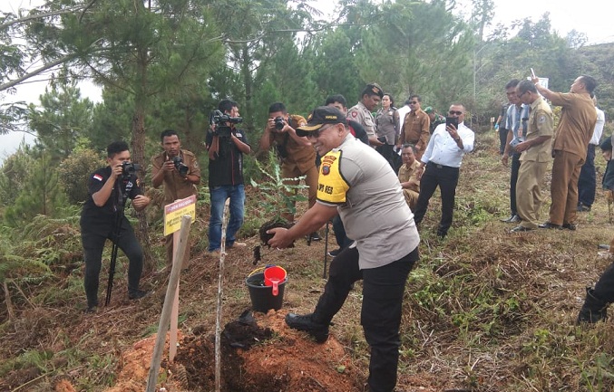 Kapolres Taput AKBP Horas Silaen sesaat sebelum melakukan Launching penanaman sejuta pohon dikawasan Gantole Hutaginjang, Selasa (15/10/2019) menegaskan Polri ingin ikut ambil peran penghijauan lingkungan.