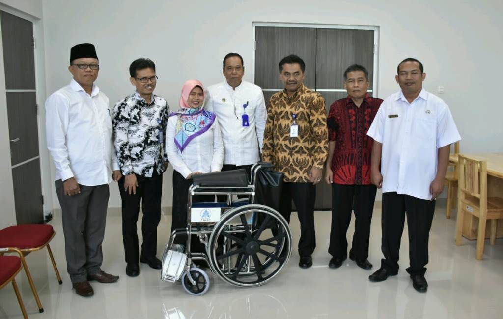 TEBINGTINGGI - Kepala Cabang Taspen Persero Medan Adhari Effendi menyerahkan bantuan lima unit kursi roda (rostule/wheel chair) kepada Pemerintah Kota Tebing Tinggi yang diterima Pj Sekdako Marapusuk Siregar didampingi Kepala BPKPAD Jeffri Sembiring, Rabu (24/4/2019) di Balai Kota Tebing Tinggi.