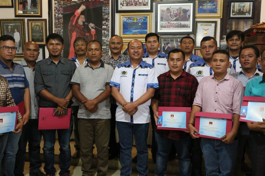 Bupati Taput Nikson Nababan diabadikan dengan Pengurus PWI Bona Pasogit serta pewarta penerima kartu dan sertifikat UKW. PALAPAPOS/Alpon Situmorang