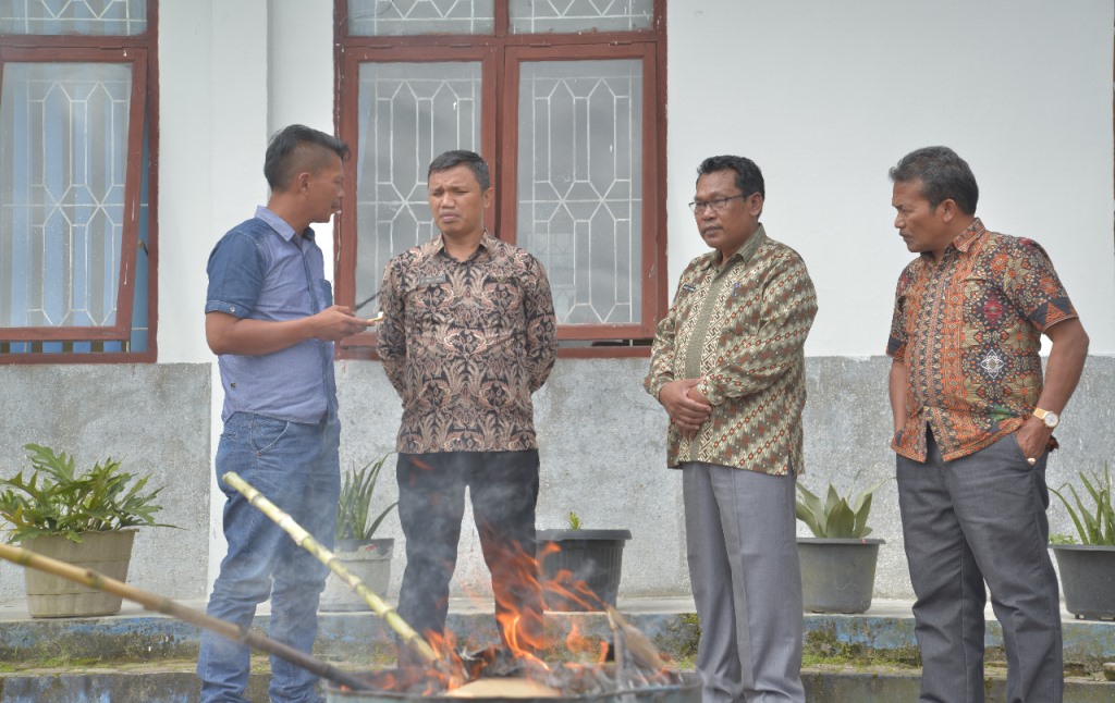 Plt Dinas Dukcapil Humbahas AP Marbun dan perwakilan Dukcapil Pemprovsu saat melakukan pemusnahan e-KTP. PALAPAPOS/Andi Siregar
