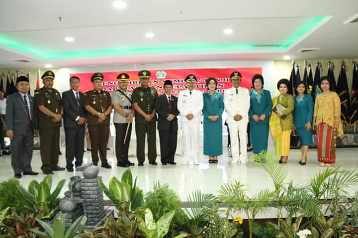 Forkompimda Taput diabadikan dengan Bupati Nikson Nababan dan Wabup Sarlandy Hutabarat didampingi istri masing-masing. PALAPAPPOSlpon Situmorang