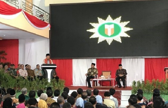 Wakil Presiden Jusuf Kalla saat memberi sambutan di Pesantren Modern Internasional Dea Malela di Sumbawa, Sabtu (3/8/2019).