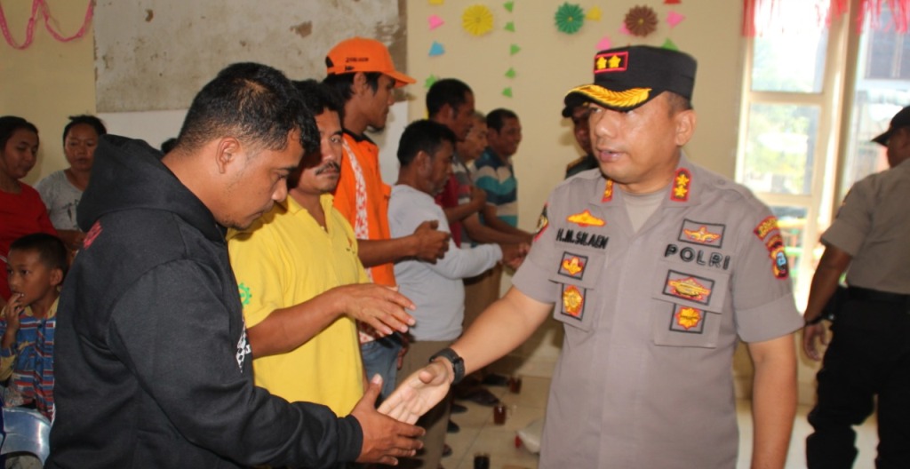 TAPANULI UTARA - Kapolres Tapanuli Utara AKBP Horas Marasi Silaen, Senin (13/1/2020), memberikan bantuan kepada masyarakat tertimpa musibah kebakaran yang terjadi di Desa Batu Manumpak, Kecamatan Pangaribuan, Kabupaten Tapanuli Utara, Minggu (12/1/2020).