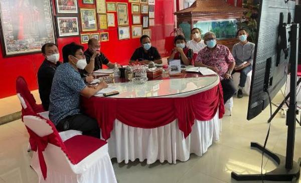 Bupati Taput Nikson Nababan saat jadi narasumber dalam zoom meeting agenda yang dilaksanakan Deputi Bidang Koordinasi Parekraf Kemenko Marves. PALAPA POS/Alpon Situmorang