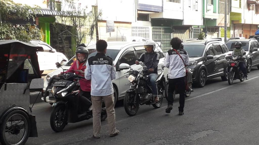 TEBING TINGGI – Dewan Pimpinan Cabang Lembaga Anti Narkotika (DPC LAN) Kota Tebing Tinggi melakukan kegiatan 'LAN Menyapa' di Simpang Empat Kota Tebing Tinggi, Rabu (15/1/2020) sore.