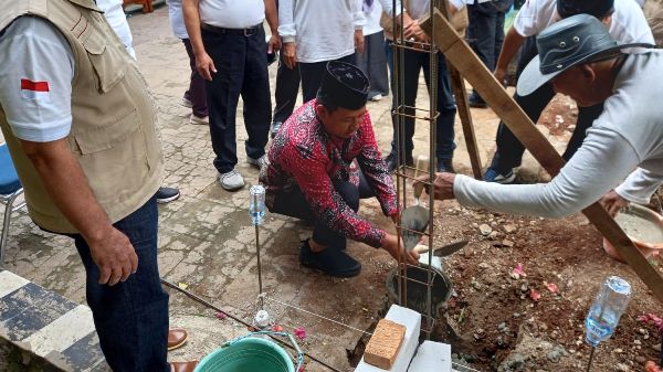Anggota DPRD Kota Bekasi dari Fraksi PDI Perjuangan, Heri Purnomo saat lakukan peletakan batu pertama pembangunan Mushola, Rabu (19/10/2022). PALAPA POS/ Yudha