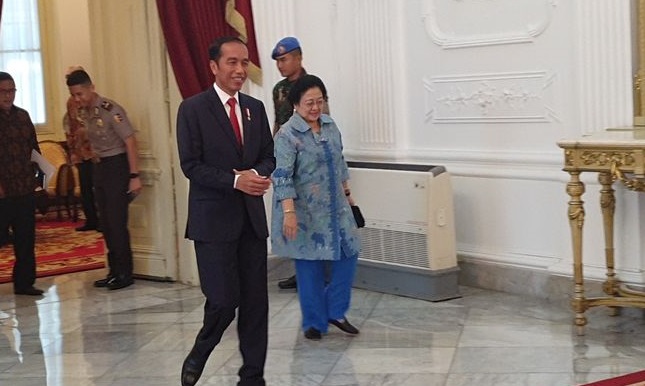 JAKARTA - Presiden Joko Widodo menerima kedatangan Ketua Dewan Pengarah Badan Pembinaan Ideologi Pancasila (BPIP) Megawati Soekarnoputri di Istana Merdeka, Jakarta.