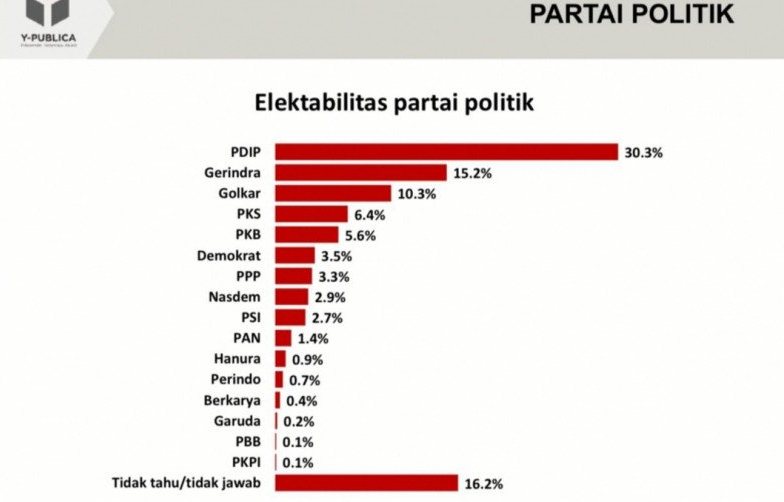 Survei Y-Publica: Elektabilitas PDI Perjuangan Masih Unggul