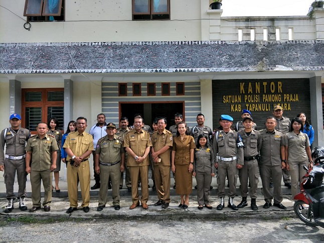 Wabup Sarlandy Hutabarat dan rombongannya usai sidak diabadikan dengan pegawai di Kantor Satpol PP Taput. PALAPA POS/Alpon Situmorang