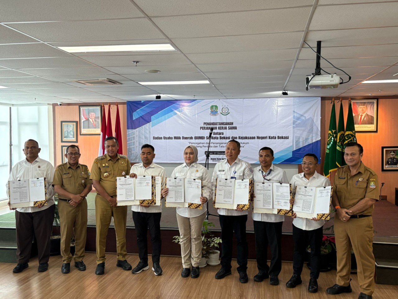 Dewan Pertimbangan DPD Partai Golkar Kota Bekasi, Abdul Manan (kiri), Ketua DPD Partai Golkar Kota Bekasi, Ade Puspitasari (kedua dari kiri), Ketua DPC Partai Persatuan Pembangunan Kota Bekasi, Solihin (ketiga dari kiri), Kamis (25/11/2021). PALAPA POS/ Yudha