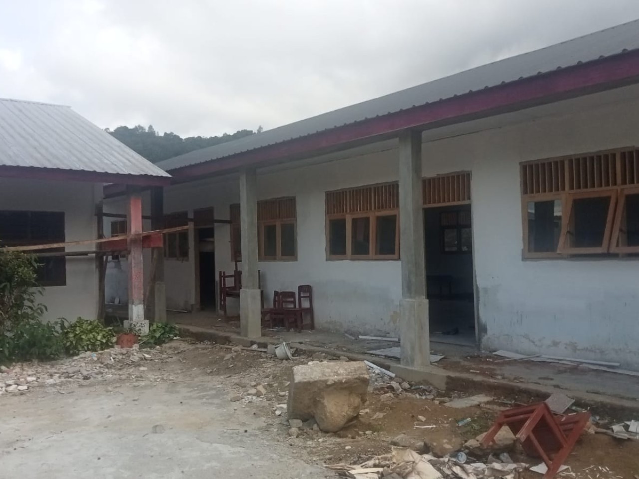 Namun, pantauan di lapangan menunjukkan tidak ada aktivitas pekerja bangunan, dan seluruh ruang kelas tampak berantakan. Proses belajar mengajar pun ikut terhenti.