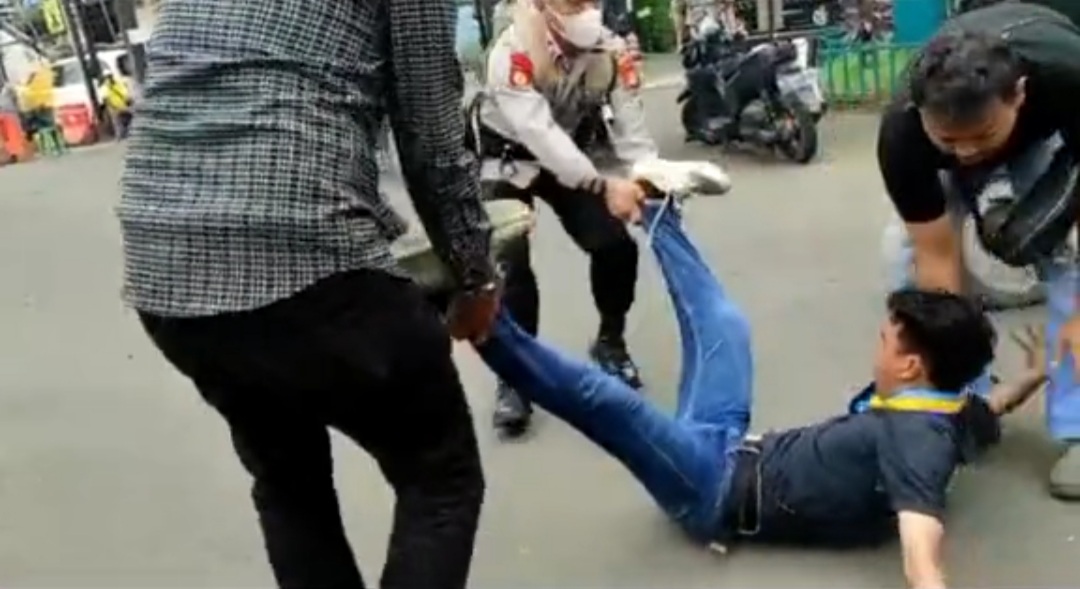 Aparat Diduga Seret Mahasiswa Saat Demo di Kejari Kota Bekasi