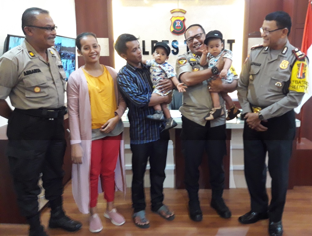 TAPANULI UTARA - Kapolres Tapanuli Utara AKBP Horas M Silaen sangat terkejut ketika menerima kedatangan si Kembar Adam dan Malik bersama orang tuanya, Rabu (28/8/2019).