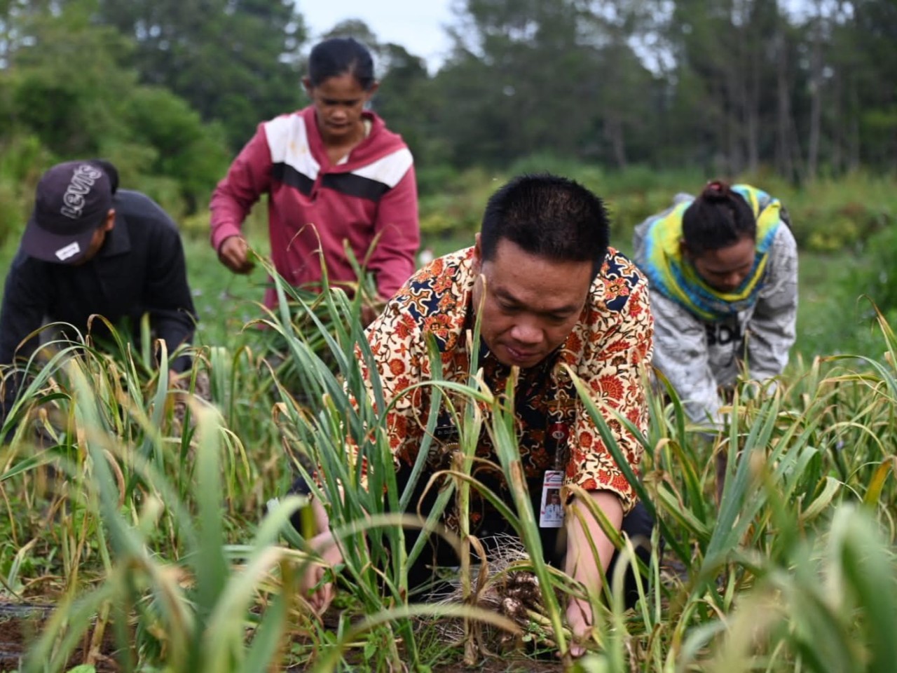 Bupati Humbahas Panen Bawang Putih Bersama Poktan Muda Djaya